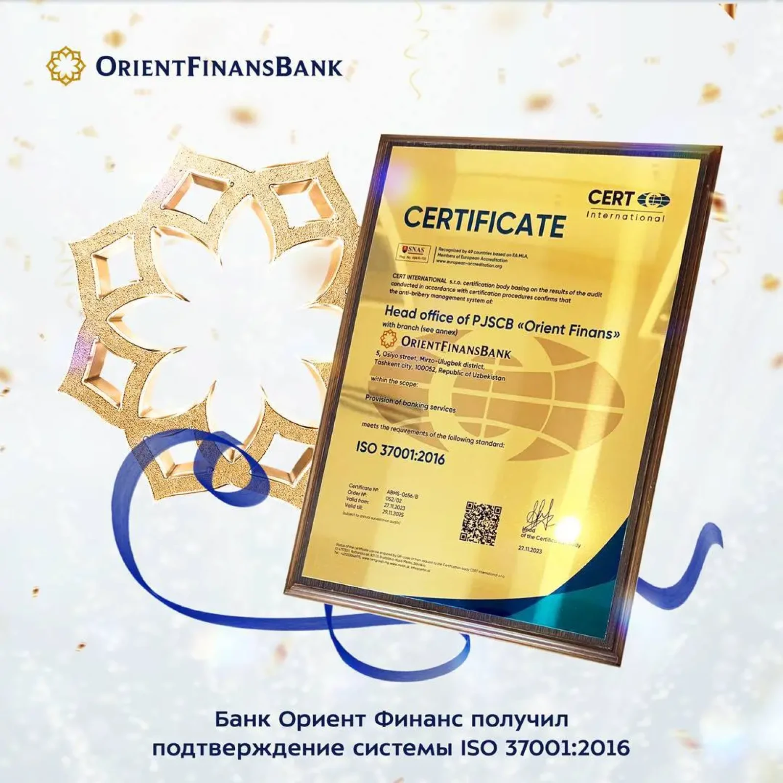Hurmatli «Orient Finans» Bankining mijozlari va xodimlari!